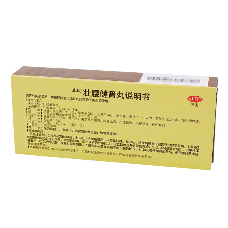 产品名称:立效 壮腰健肾丸 5.6g*1... 品牌: 立效 批准文号: 国药准字Z14020110 套餐类型: 盒 生产企业: 山西华康药业股份有限公司 规格: 5.6g*10丸/盒 类别: 中药 产品剂型: 丸剂 用法: 口服 使用剂量: 口服,一次1丸,一日2—3次。 药品通用名: 壮腰健肾丸 药品名称: 壮腰健肾丸 有效期: 36个月 药品分类: 非处方药