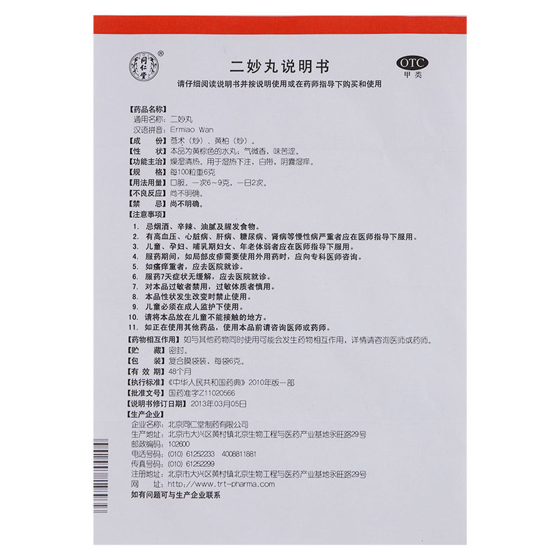 产品名称:同仁堂 二妙丸 6g*12袋/... 品牌: 同仁堂 批准文号: 国药准字Z11020566 套餐类型: 生产企业: 北京同仁堂制药有限公司 规格: 6g*12袋/盒 类别: 中药 产品剂型: 丸剂 用法: 口服 使用剂量: 一次6-9g,一日2次 药品通用名: 二妙丸 药品名称: 二妙丸 有效期: 48个月 药品分类: 非处方药
