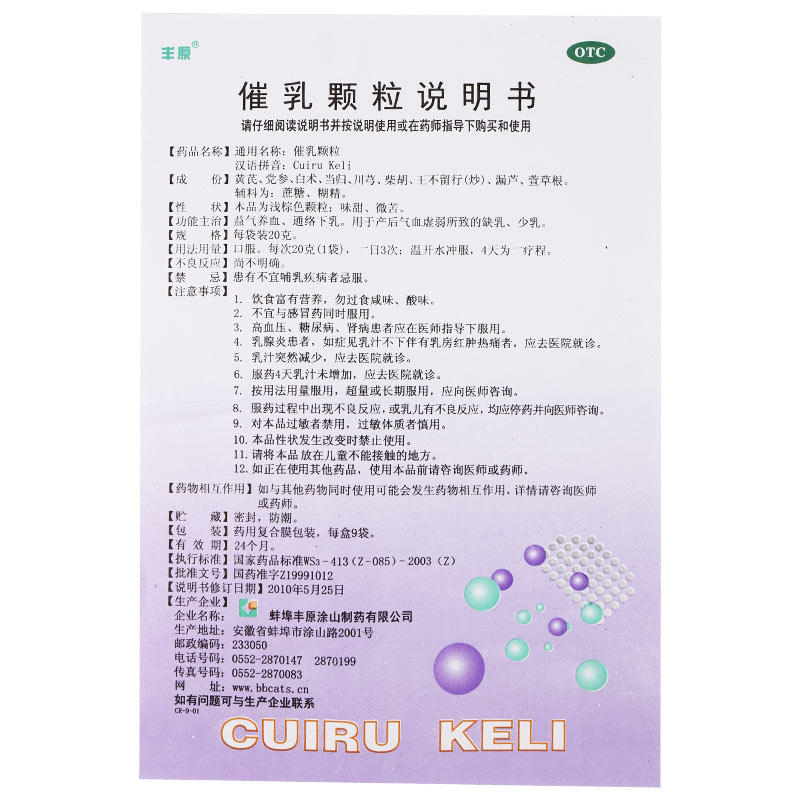产品名称:丰原 催乳颗粒 20g*9袋/... 产品剂型: 颗粒 使用剂量: 每次1袋,一日3次。 品牌: 丰原 套餐类型: 有效期: 24个月 用法: 口服 药品分类: 非处方药 药品名称: 催乳颗粒 药品通用名: 催乳颗粒 批准文号: 国药准字Z19991012 生产企业: 蚌埠丰原涂山制药有限公司 规格: 20g*9袋/盒 类别: 中药